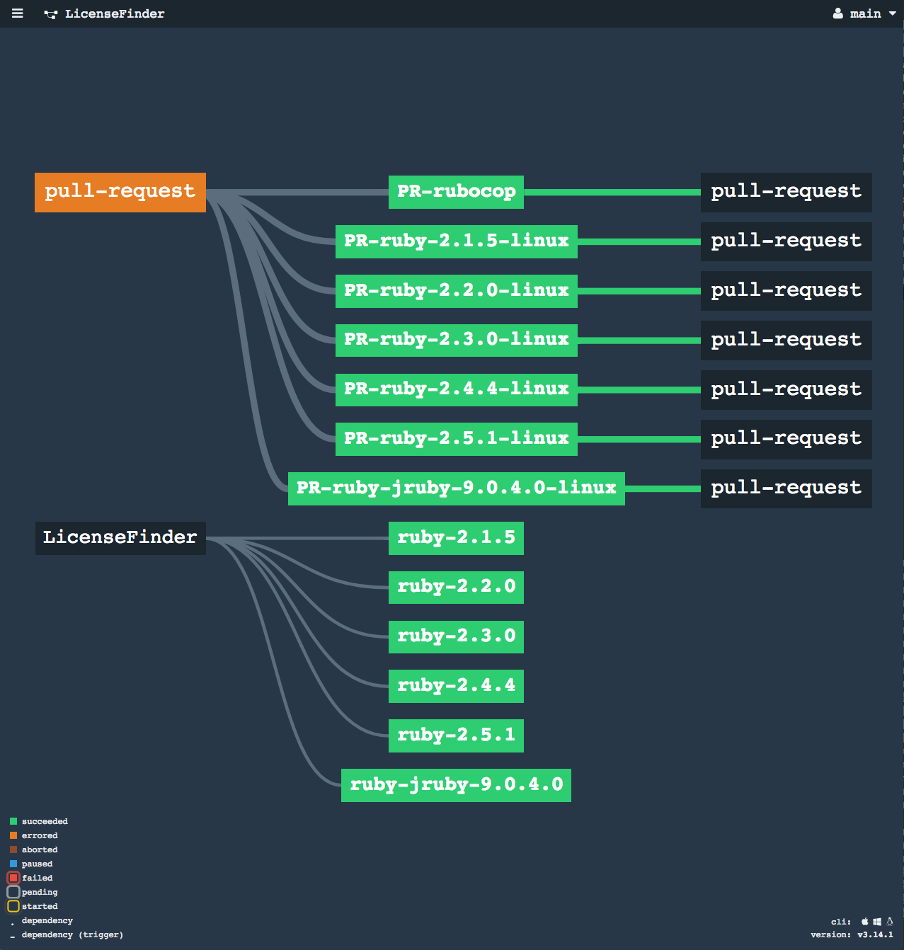 As a Developer, I have a small Ruby project with build, test, and ship stages. I initially only test against the master branch with Ruby v2.1.x and ship only if master passes.