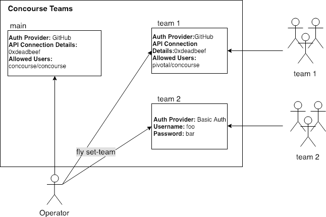 :as the separator instead of/ - Users logging into Concourse are whitelisted into all teams that match their provider membership. More on this later