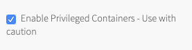 Checkbox labelled “Enable Privileged Containers — Use with caution”