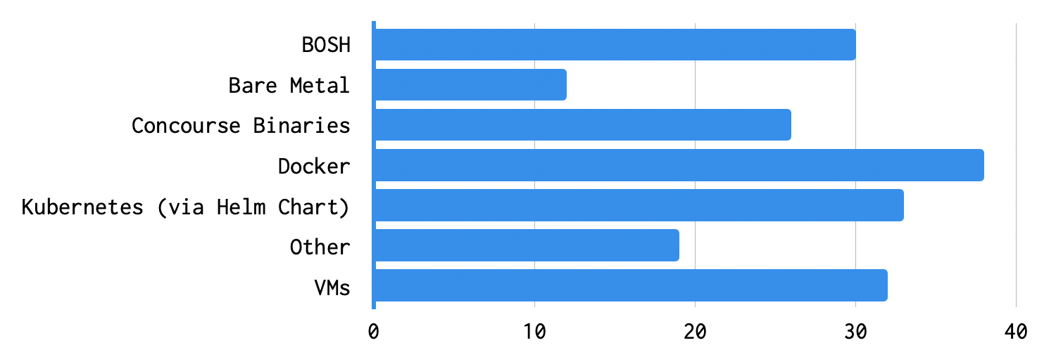 A recurring topic that comes up in conversations with customers and internal teams at VMware is the sheer variety of ways that Concourse can be set up and put to work. Running this survey further reinforces that idea, giving us insight into an even larger number of configurations and implementations than what we see during our day to day enterprise development and support.